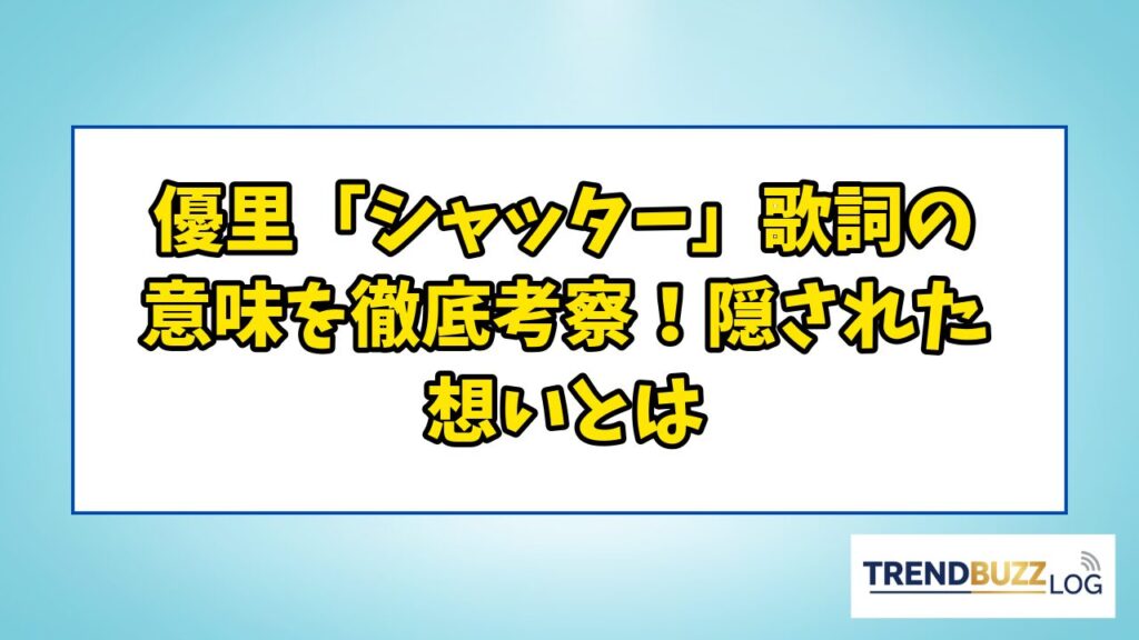 優里が歌う「シャッター」は、切ない失恋の情景をカメラのシャッターに重ねて描いた名曲です。 リリースから数年が経った今もストリーミング再生数を伸ばし続け、累計4億回を突破するロングヒットとなっています。 「歌詞にどんな意味が込められているのか... -
