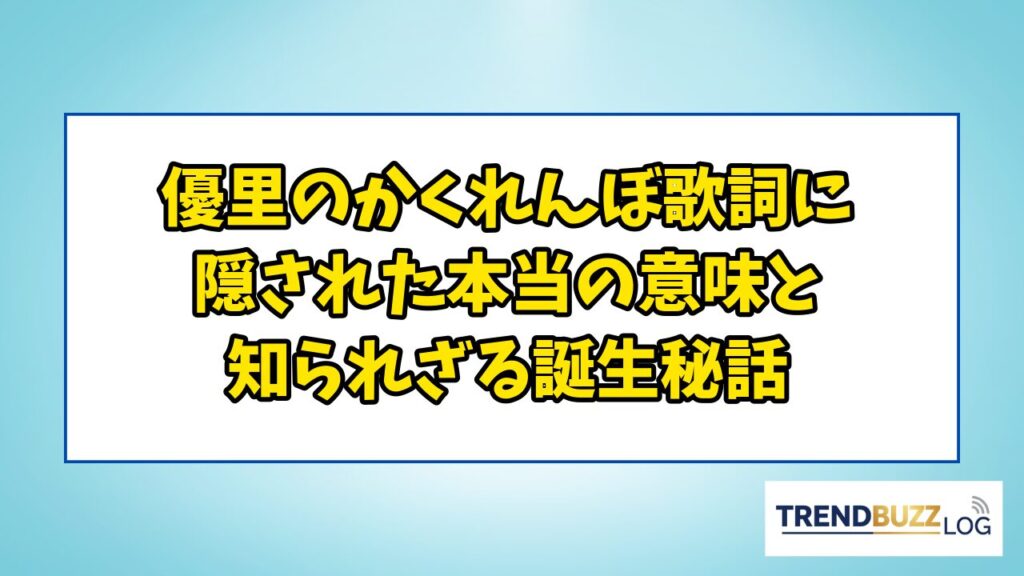優里のかくれんぼ歌詞に隠された本当の意味と知られざる誕生秘話