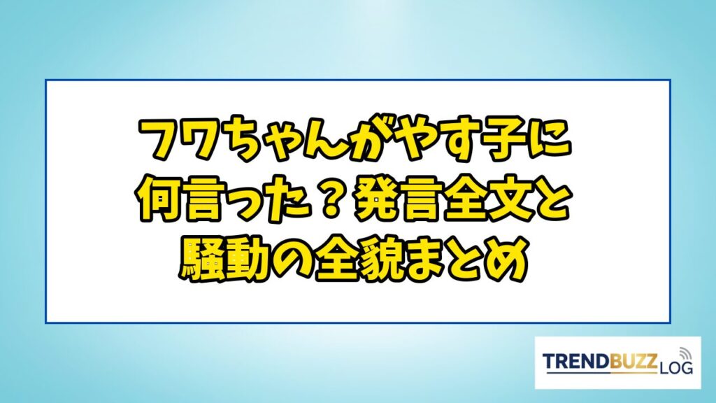 「フワちゃんがやす子に何を言ったのか」という疑問は、2024年夏に日本中を騒がせた芸能ニュースの中でも特に注目を集めた話題です。 SNS上で拡散されたスクショや発言の全文を見て衝撃を受けた方も多いのではないでしょうか。 この記事では、フワちゃんが...