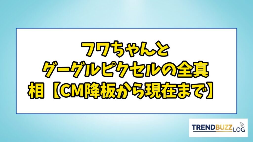 フワちゃんとグーグルピクセルの関係は、日本のスマホCM史において異例の成功と衝撃的な終幕を迎えた事例として知られています。 2022年から約2年にわたりGoogle Pixelの顔として活躍したフワちゃんは、あるSNS騒動をきっかけにCMを降板し、芸能活動の休止... -