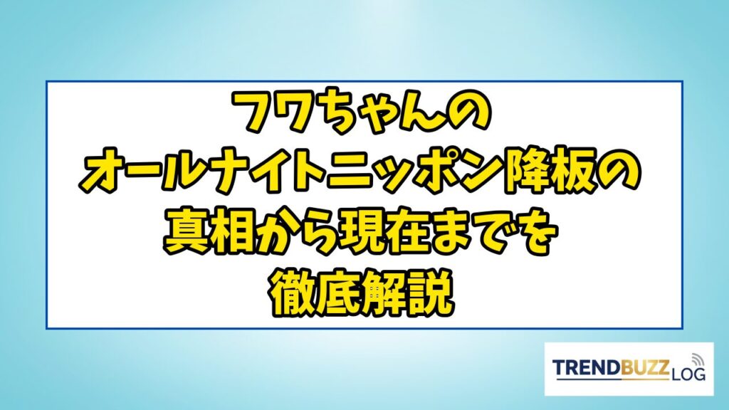 フワちゃんのオールナイトニッポンは、深夜ラジオの歴史に強烈な足跡を残した番組です。 2021年の放送開始から多くのリスナーを魅了し、数々の神回を生み出してきた一方で、2024年8月に突如として打ち切りとなりました。 「なぜ降板に至ったのか」「後任は... -