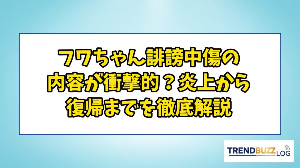 2024年8月、フワちゃんがSNS上でお笑い芸人・やす子に対して行った不適切な投稿が大きな社会問題となりました。 「フワちゃんは実際に何を投稿したのか」「なぜあそこまで炎上が拡大したのか」「法的にはどのような問題があるのか」といった疑問を抱えてい... -