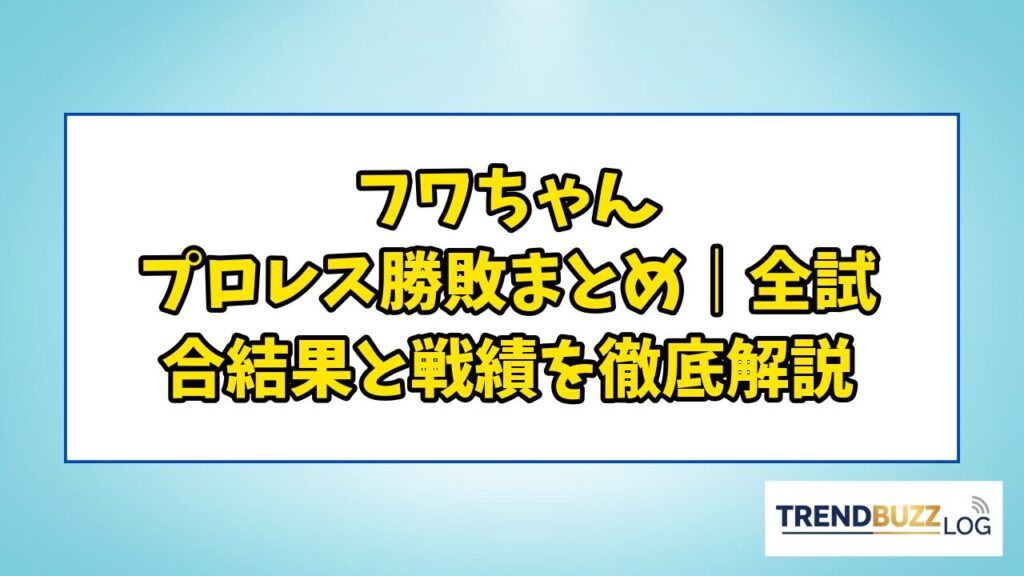 タレントから女子プロレスラーへと転身したフワちゃんの試合結果が気になっている方は多いのではないでしょうか。 2022年のデビュー戦から2025年末の再デビュー、そして2026年現在に至るまで、フワちゃんのプロレスにおける勝敗は大きな注目を集め続けてい... -