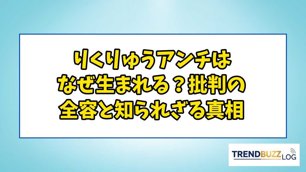りくりゅうに対するアンチ的な声は、特定の組織や運動によるものではなく、SNSや匿名掲示板で散発的に投稿される批判的な意見の総称です。