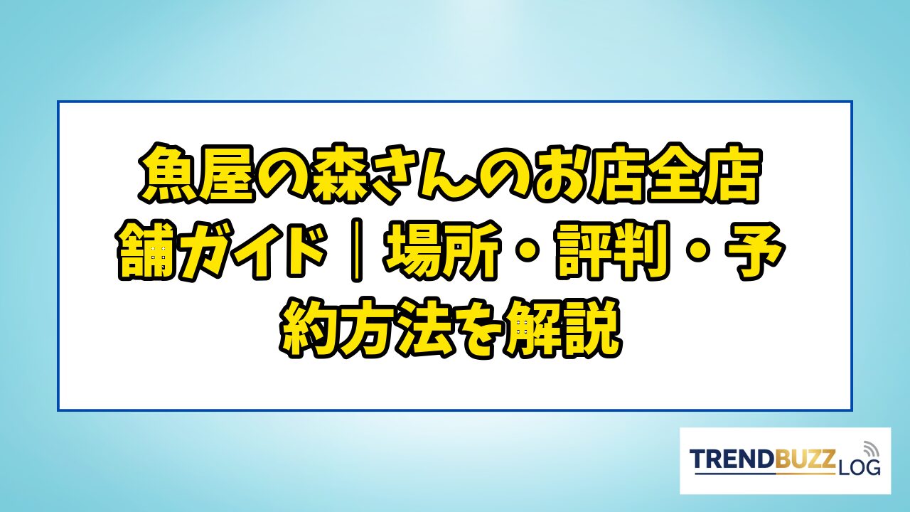 この記事では、魚屋の森さんが手掛ける全店舗の場所やアクセス、営業時間、メニュー、口コミ評判まで網羅的にご紹介します。