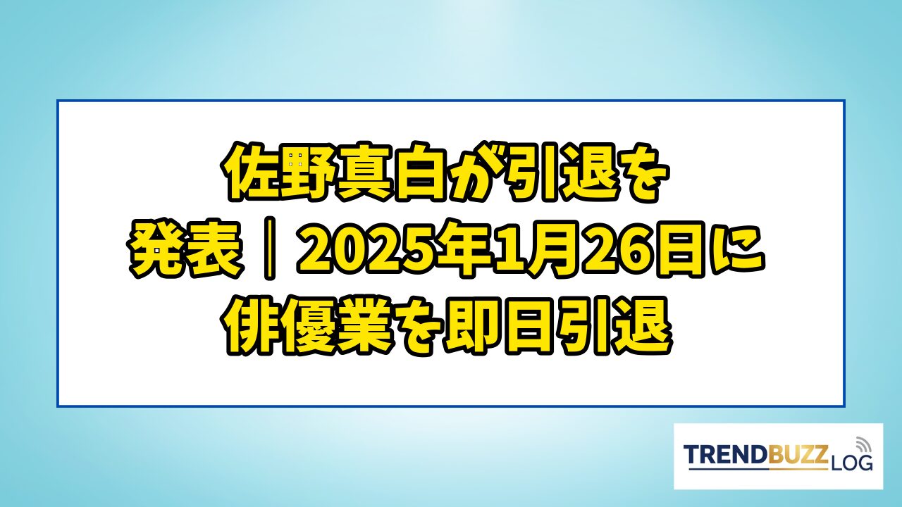 - 佐野真白は2025年1月26日に俳優業からの即日引退を発表した