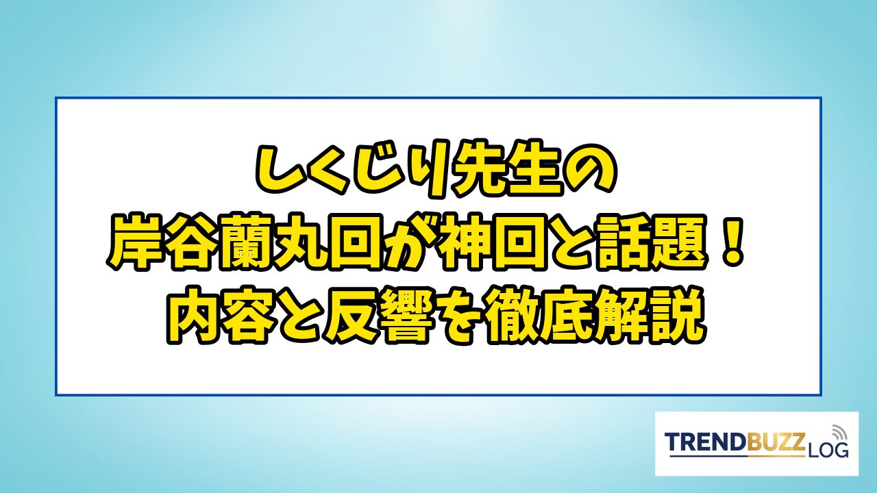 この記事では、しくじり先生の岸谷蘭丸回について、放送内容の詳細から視聴方法、放送後の反響まで、必要な情報を余すところなくお届けします。