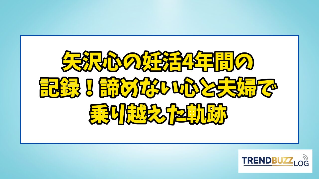 この記事では、矢沢心さんが実践した具体的な妊活の内容や、夫である魔裟斗さんとの協力体制、そして「諦めない」という強い意志について詳しく解説します。