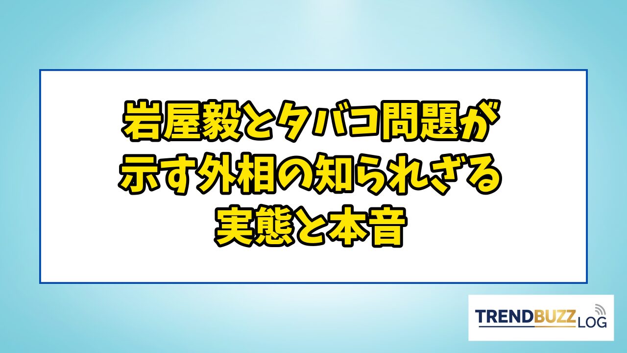 この記事では、岩屋毅氏がどれほどの喫煙習慣を持つ人物なのか、政治家としてタバコ政策にどう関わってきたのか、そしてG7での一連の行動が何を意味するのかを整理していきます。