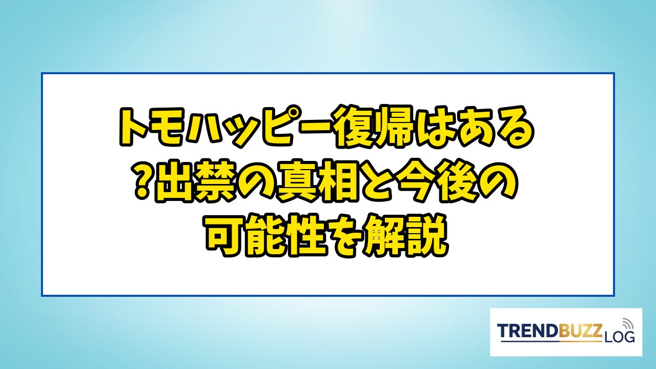 この記事では、出禁処分がいつ発表されたのか、降板に至った詳しい経緯、そして過去に許された事例との比較から今後の復帰可能性まで、トモハッピーを取り巻く状況を詳しく解説していきます。