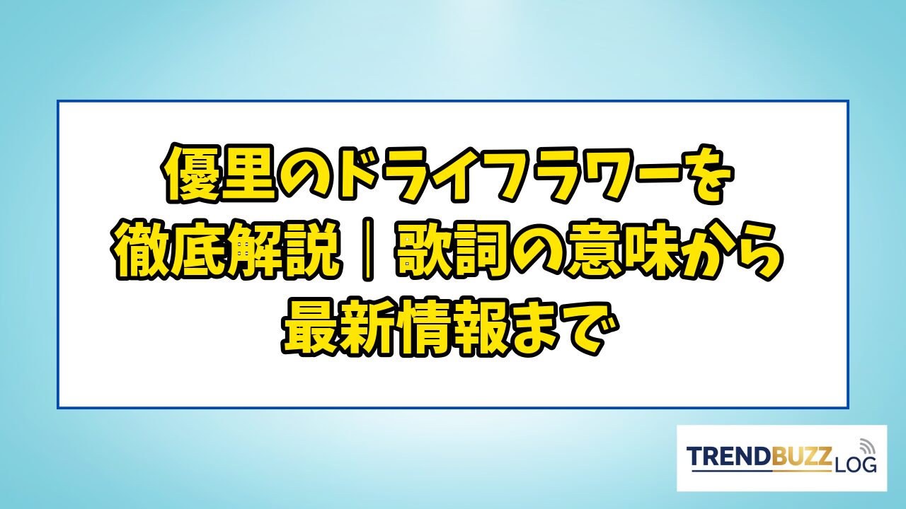 この記事では、ドライフラワーの歌詞に込められた意味や楽曲の背景、カラオケで歌う際の音域情報、MVに出演した女優、さらにはドラマ化や英語バージョンまで、あらゆる角度から網羅的に解説していきます。