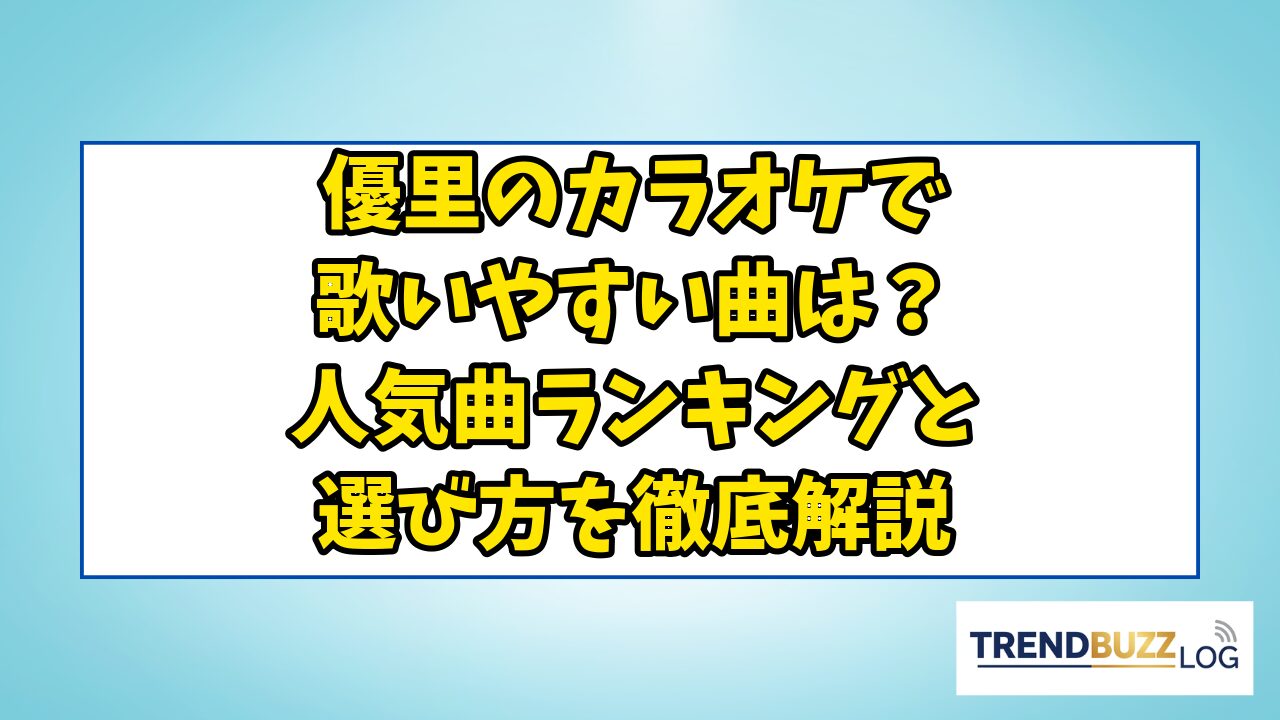 この記事では、カラオケ機器のランキングデータや音域情報をもとに、優里の人気曲ランキング、難易度別のおすすめ楽曲、高得点を狙うためのキー設定のコツまでを網羅的に解説していきます。