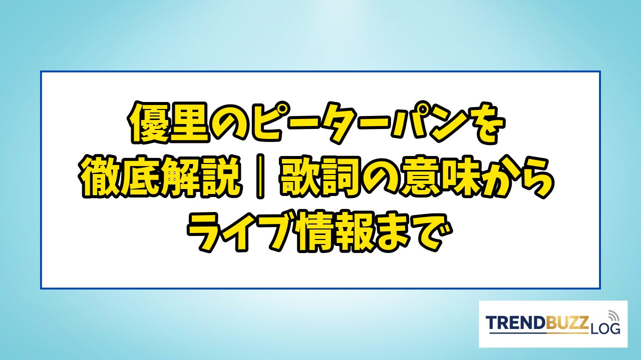 この記事では、楽曲の歌詞に込められた意味やコード進行の特徴、ミュージックビデオで話題になったダンサー、ライブでの演奏頻度、さらに他の代表曲との違いまで、「ピーターパン」に関するあらゆる情報を網羅的に紹介していきます。