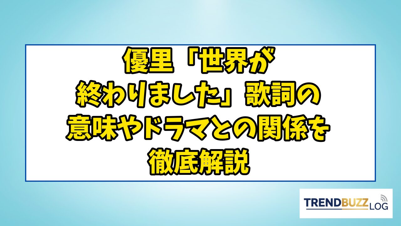 この記事では、楽曲の基本情報から歌詞の深い考察、ドラマとのリンク、音域やカラオケでの歌い方、さらにはチャートでの動向まで、「世界が終わりました」に関するあらゆる情報を網羅的に解説していきます。
